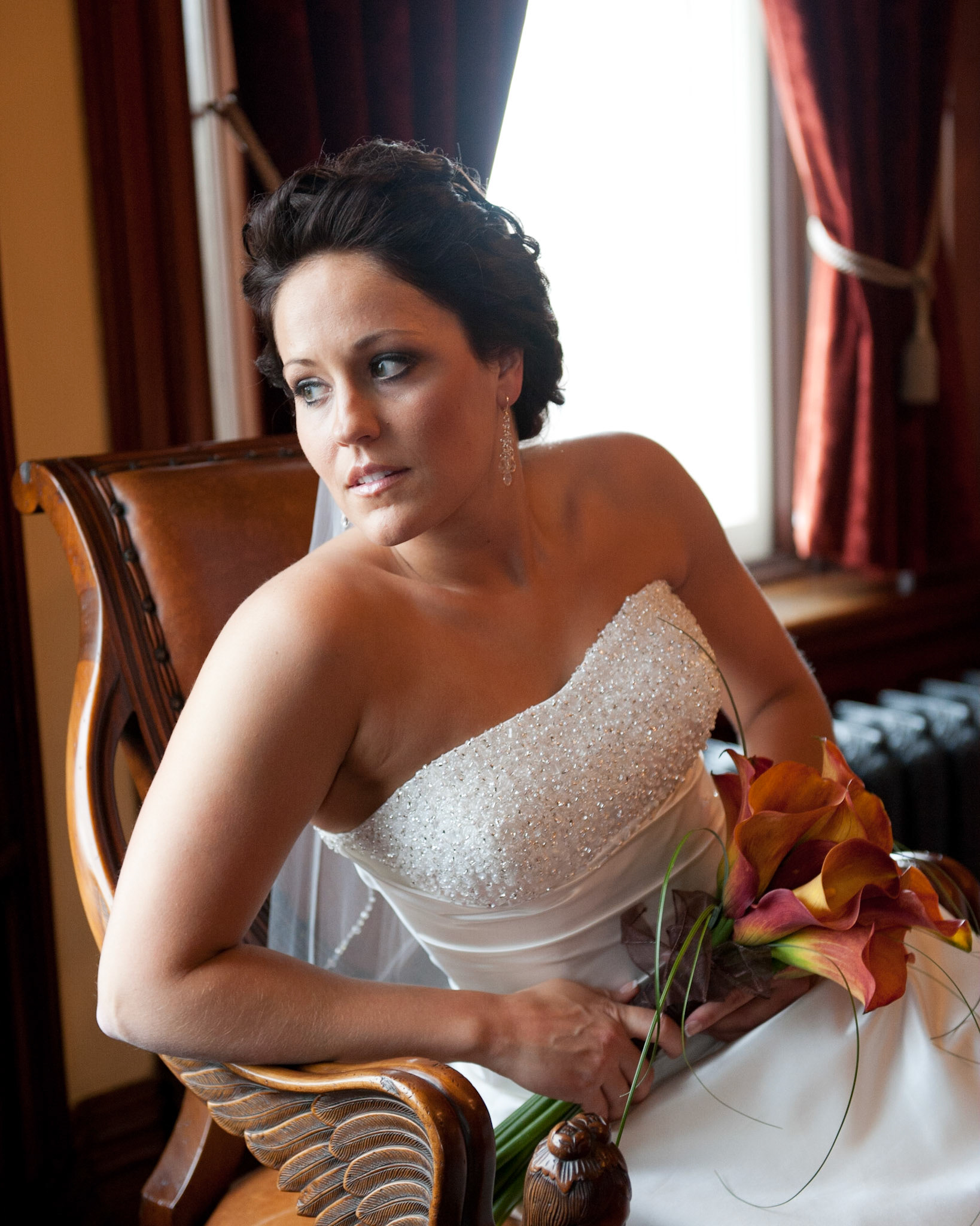 Bridal portraits are enjoyable. All brides are beautiful. So much preparation, hair stylists, makeup artists, jewellery, the beautifully dress, shoes and bouquet of flowers all of which make for great photography. Having fun, developing a rapport, natural lighting and the classic modern style makes for fine portraiture.