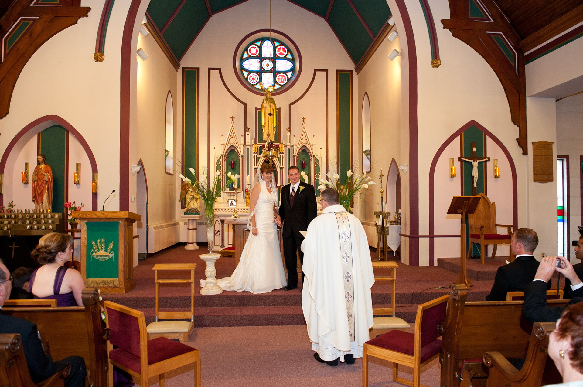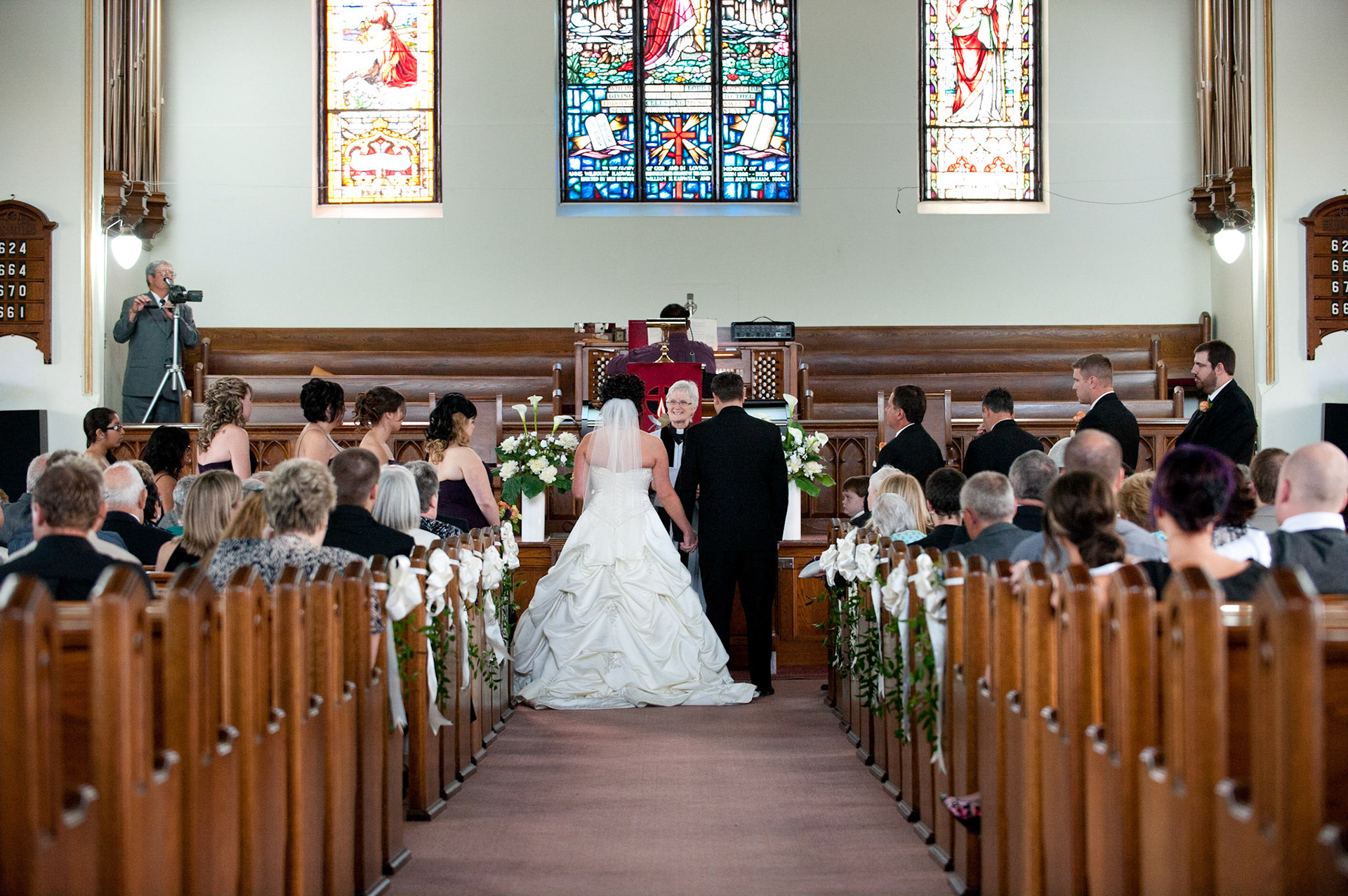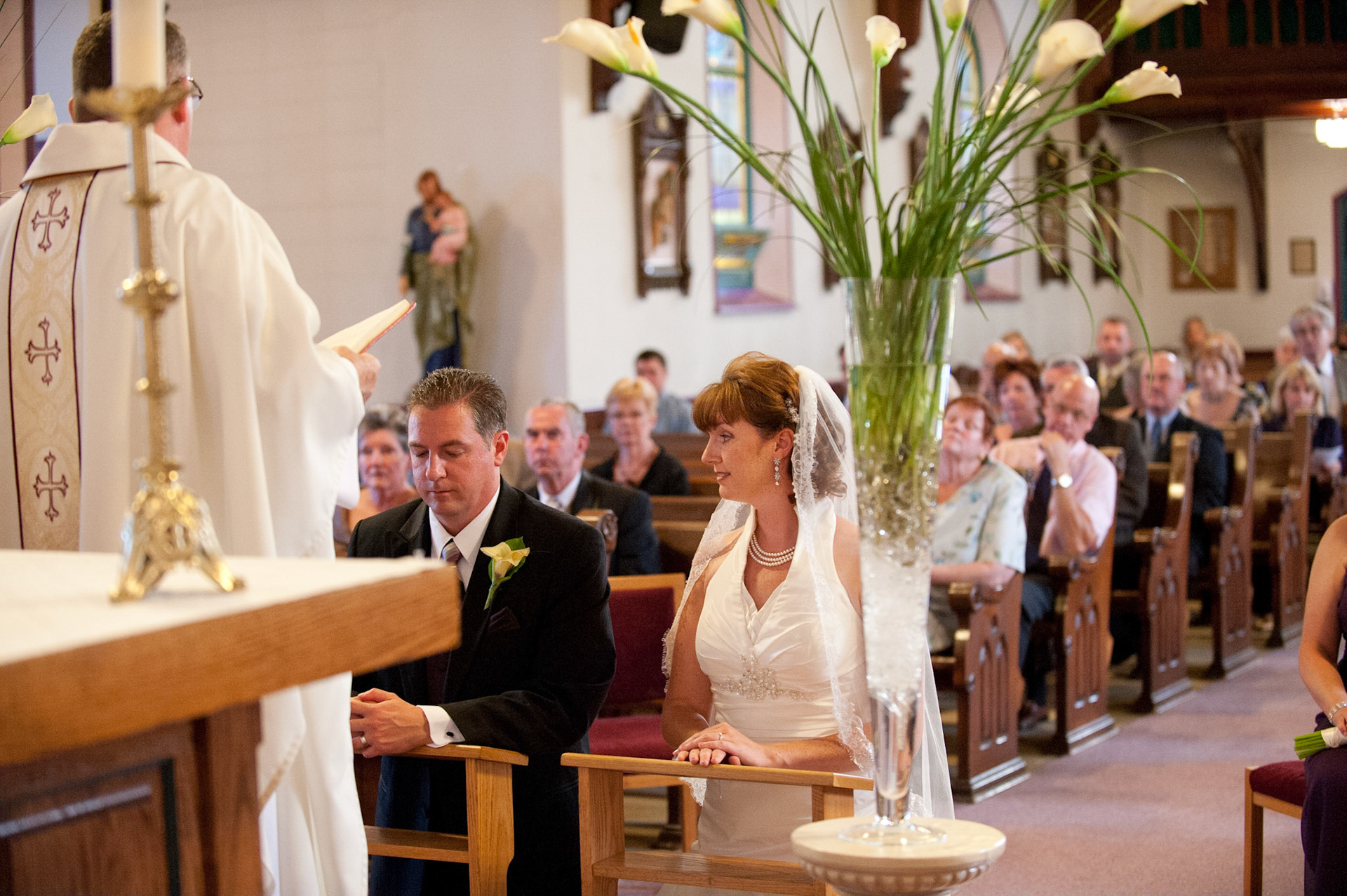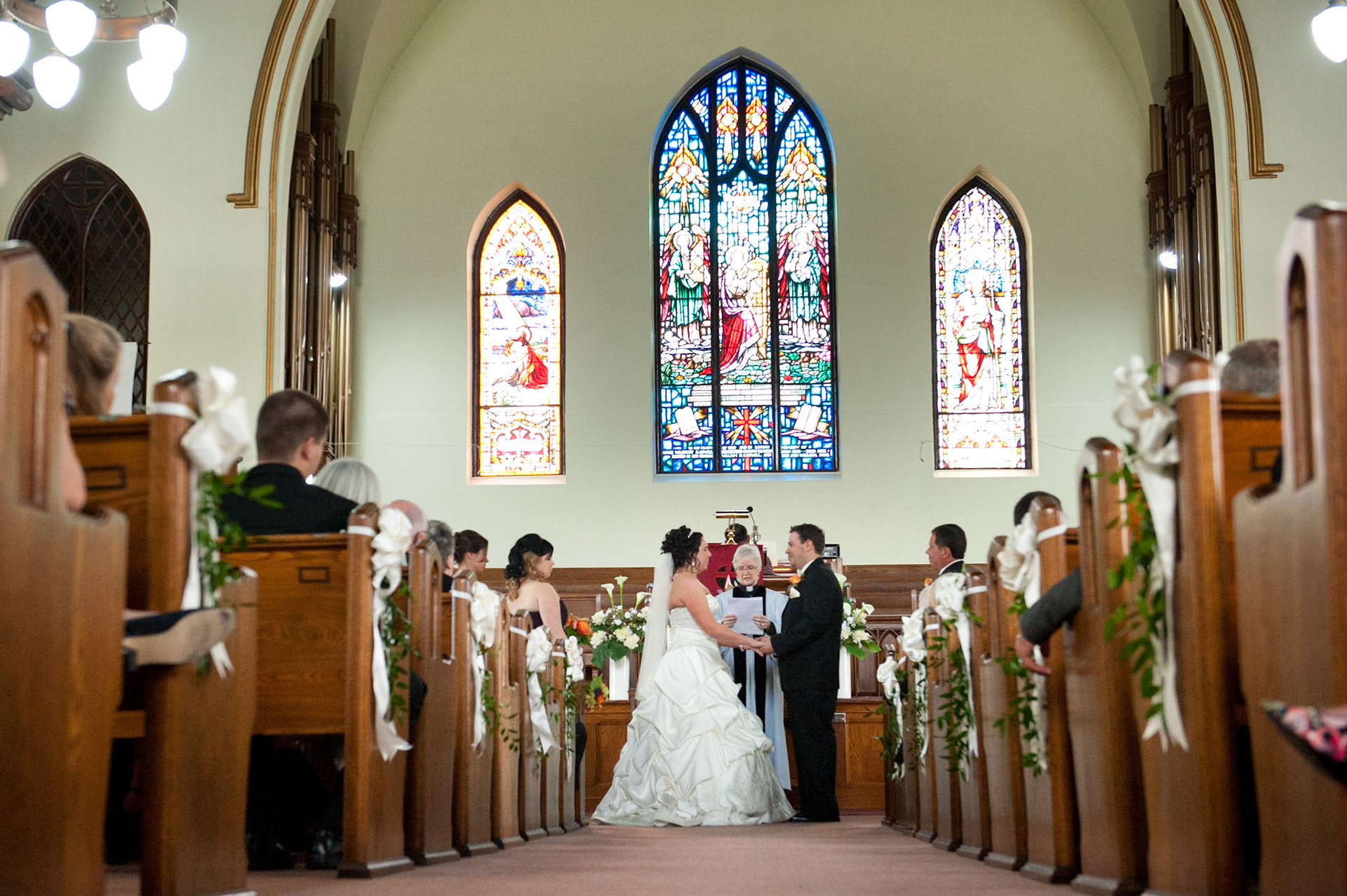 The wedding ceremony is a sacred covenant entered into before God and in the presence of family and friends. The photographer should do their best to be non-intrusive at this time. Officiating clergy will often ask that no flash be used, which is no problem, considering today's cameras are capable of great images in low light using high ISO values.