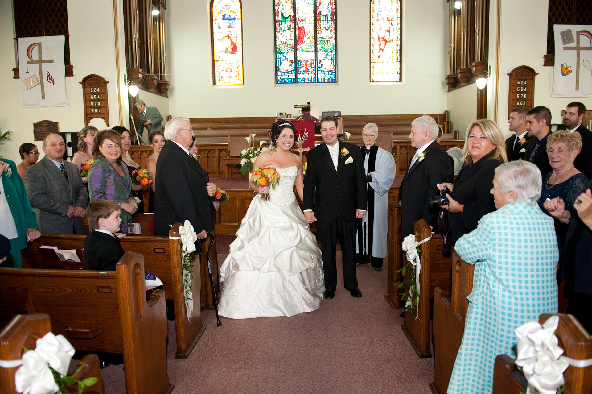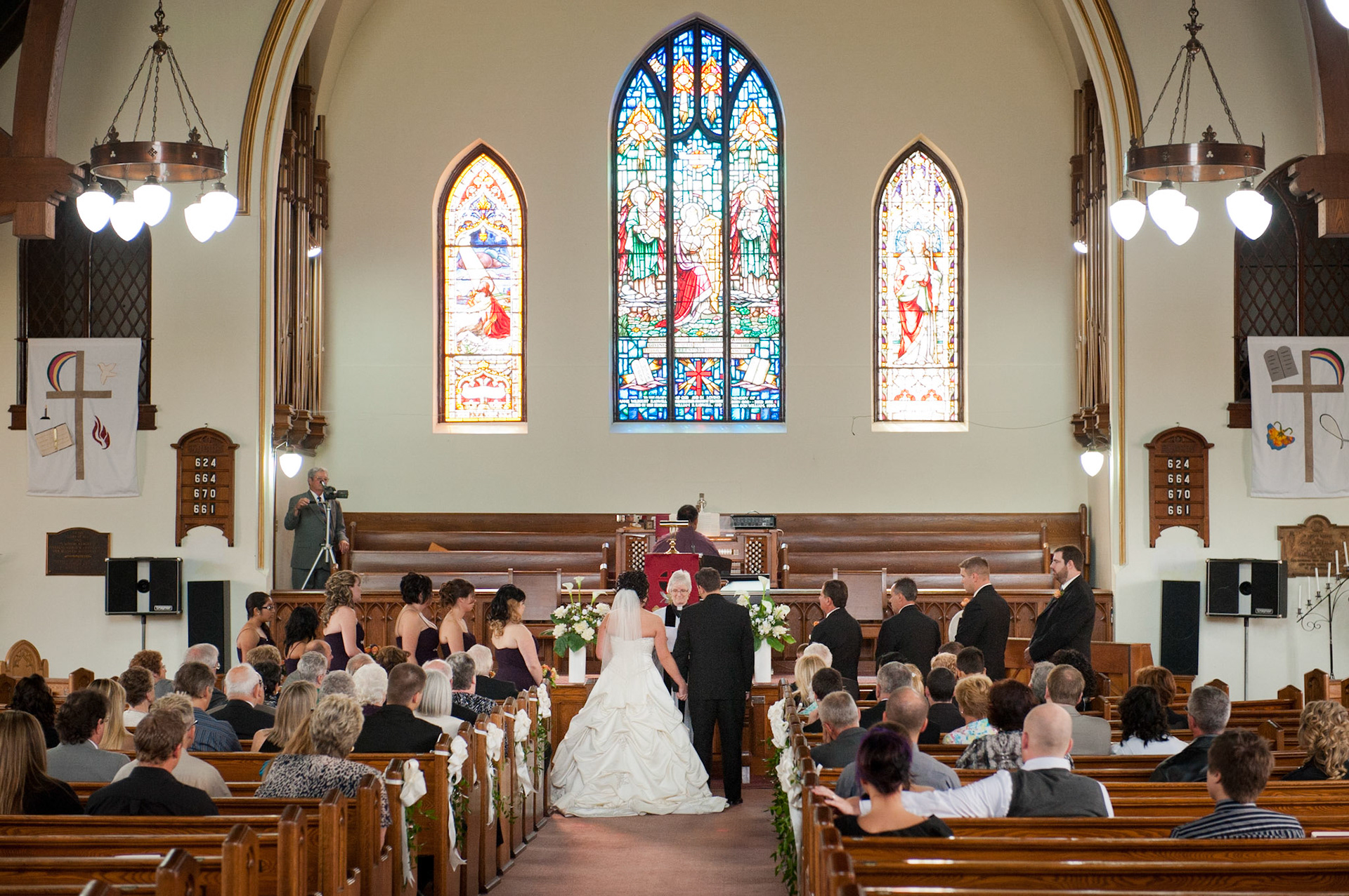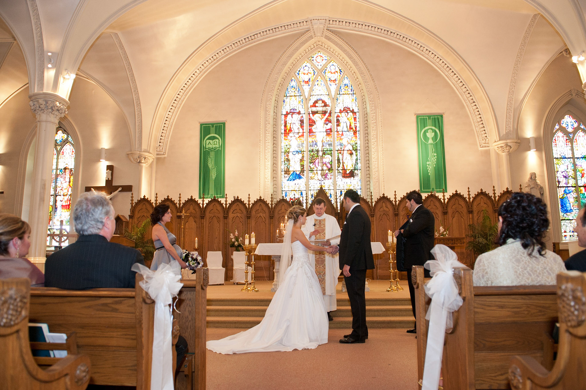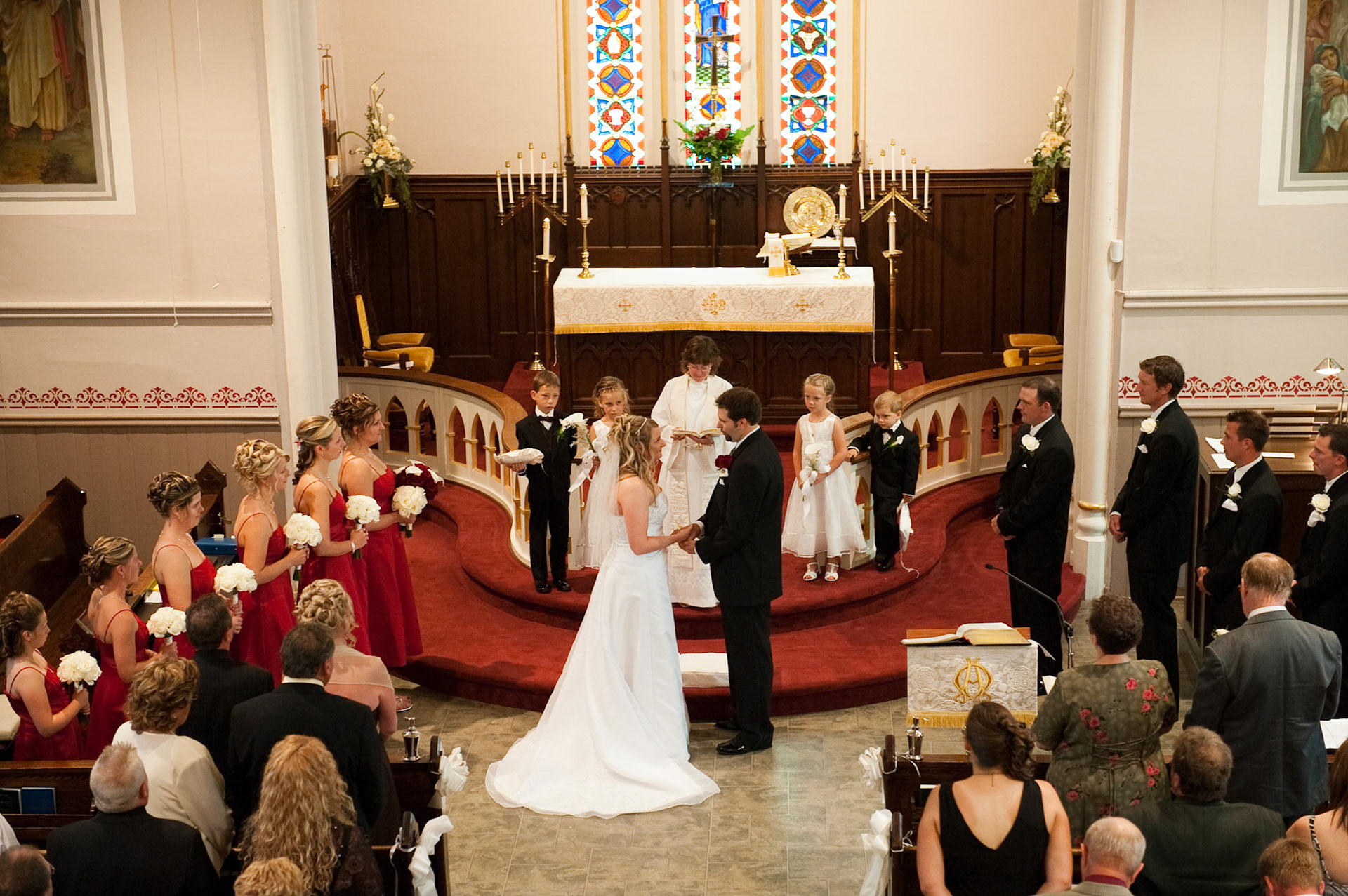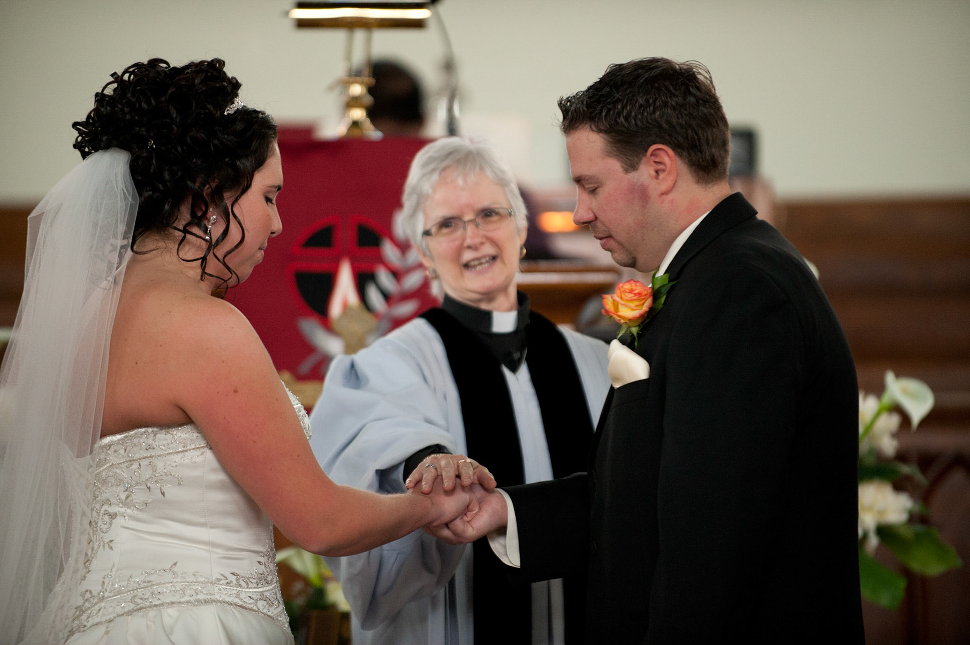 The wedding ceremony is a sacred covenant entered into before God and in the presence of family and friends. The photographer should do their best to be non-intrusive at this time. Officiating clergy will often ask that no flash be used, which is no problem, considering today's cameras are capable of great images in low light using high ISO values.