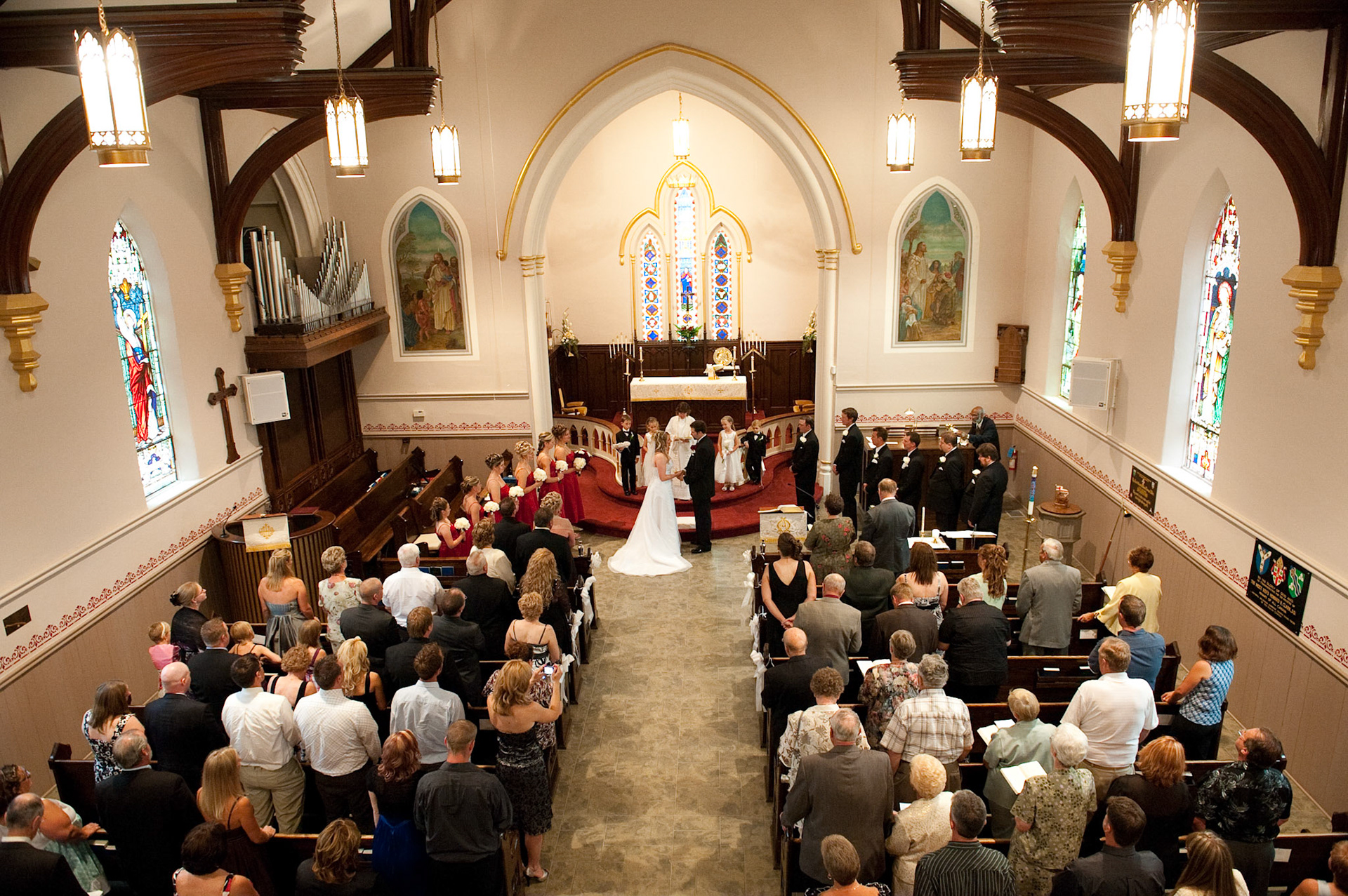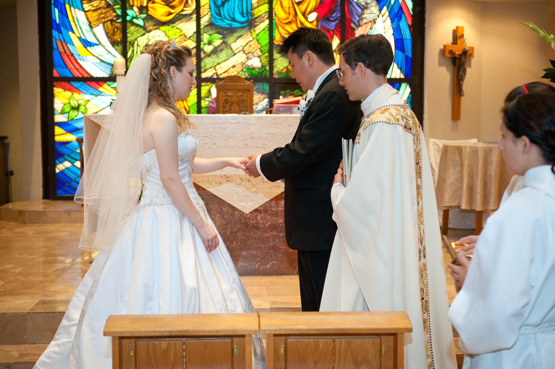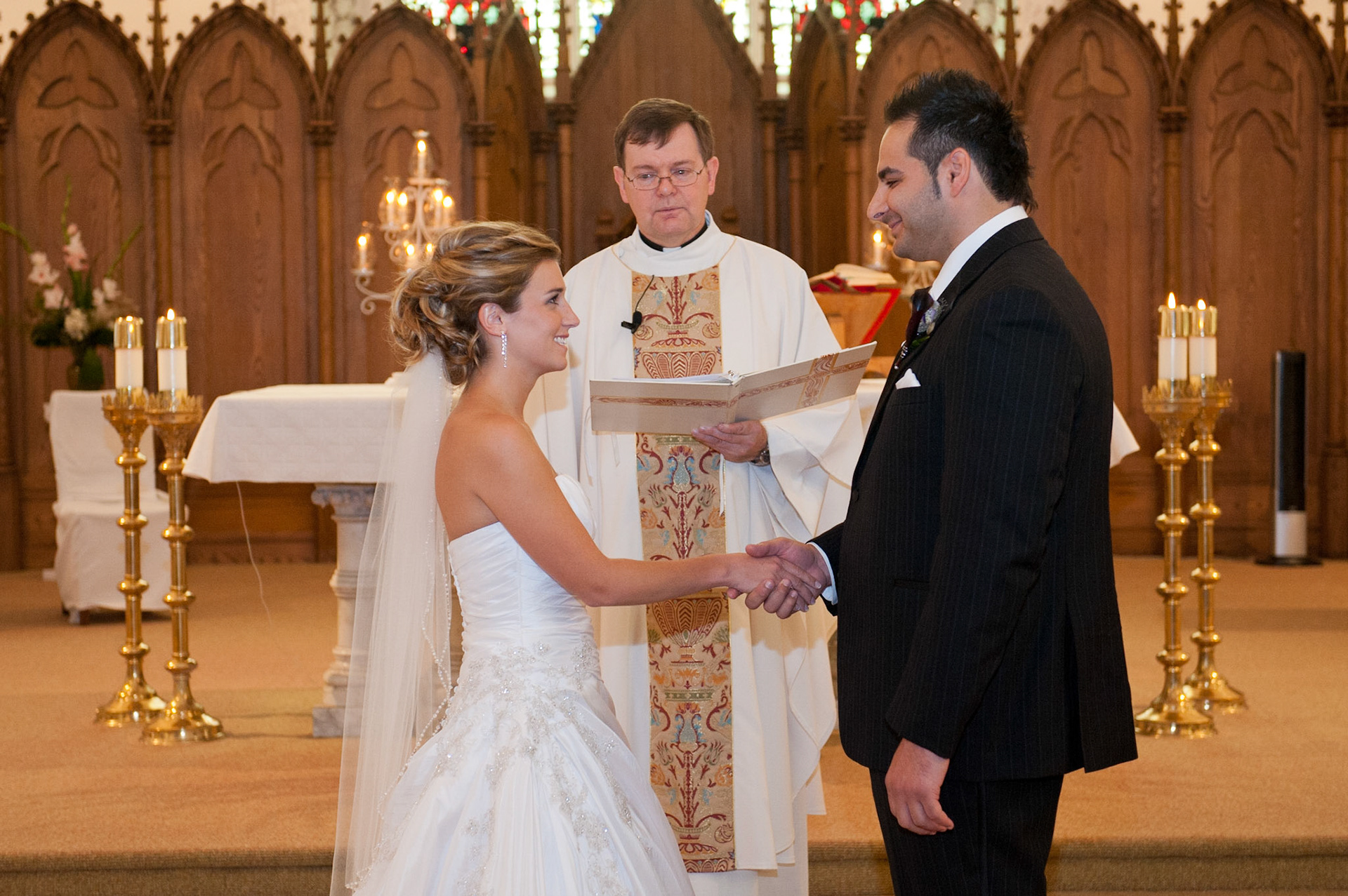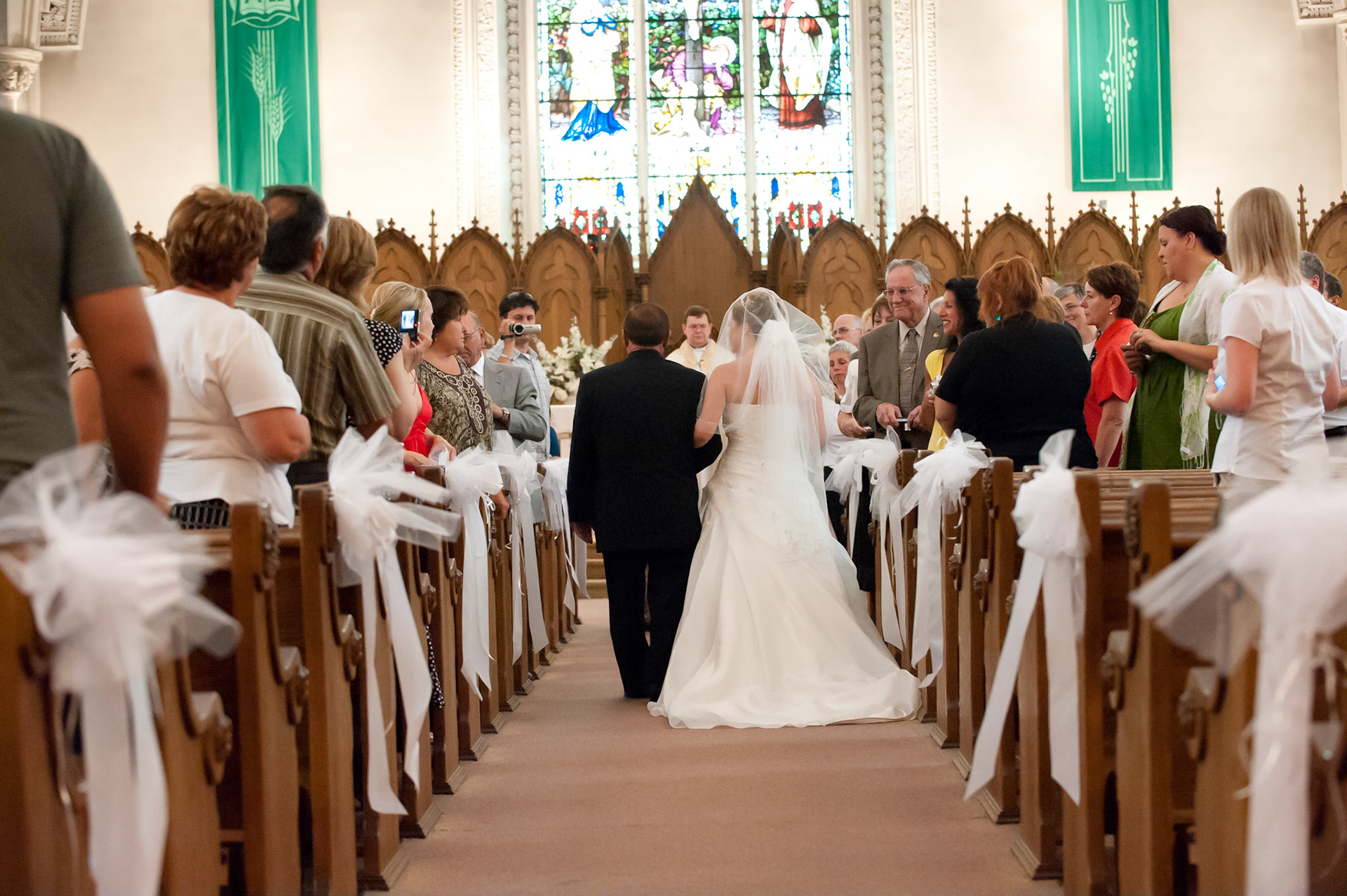 The wedding ceremony is a sacred covenant entered into before God and in the presence of family and friends. The photographer should do their best to be non-intrusive at this time. Officiating clergy will often ask that no flash be used, which is no problem, considering today's cameras are capable of great images in low light using high ISO values.