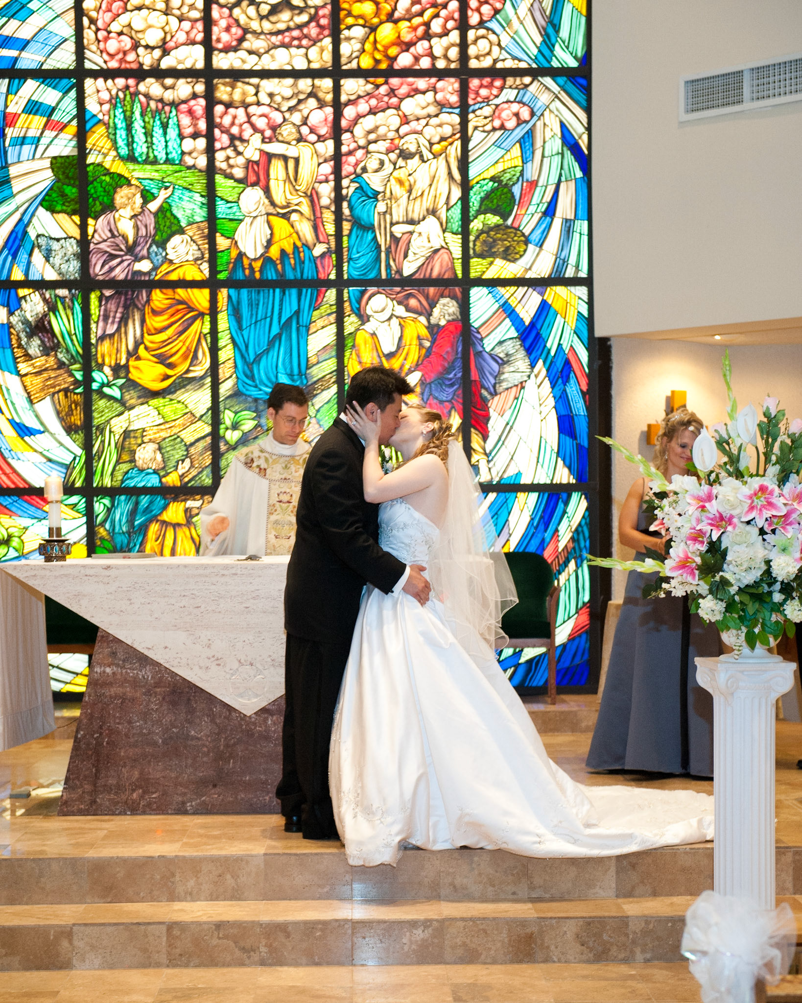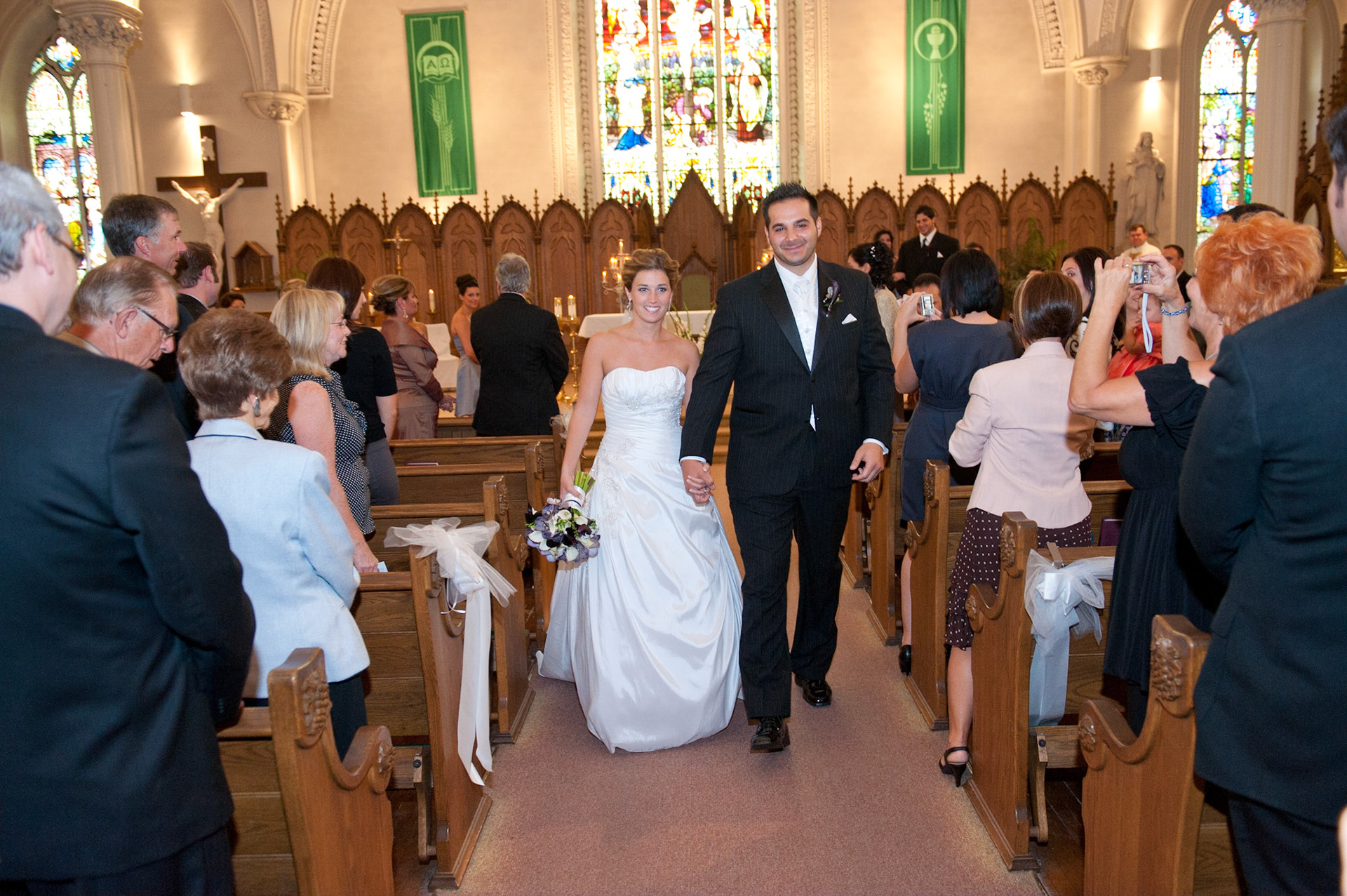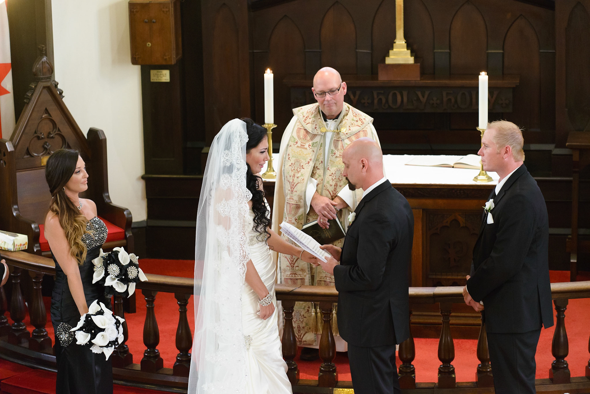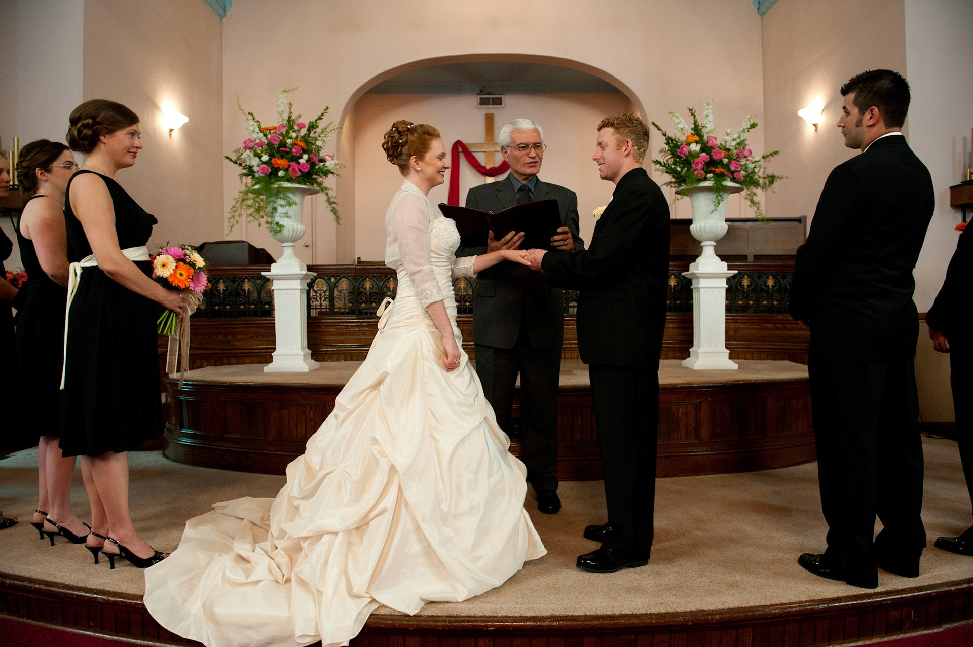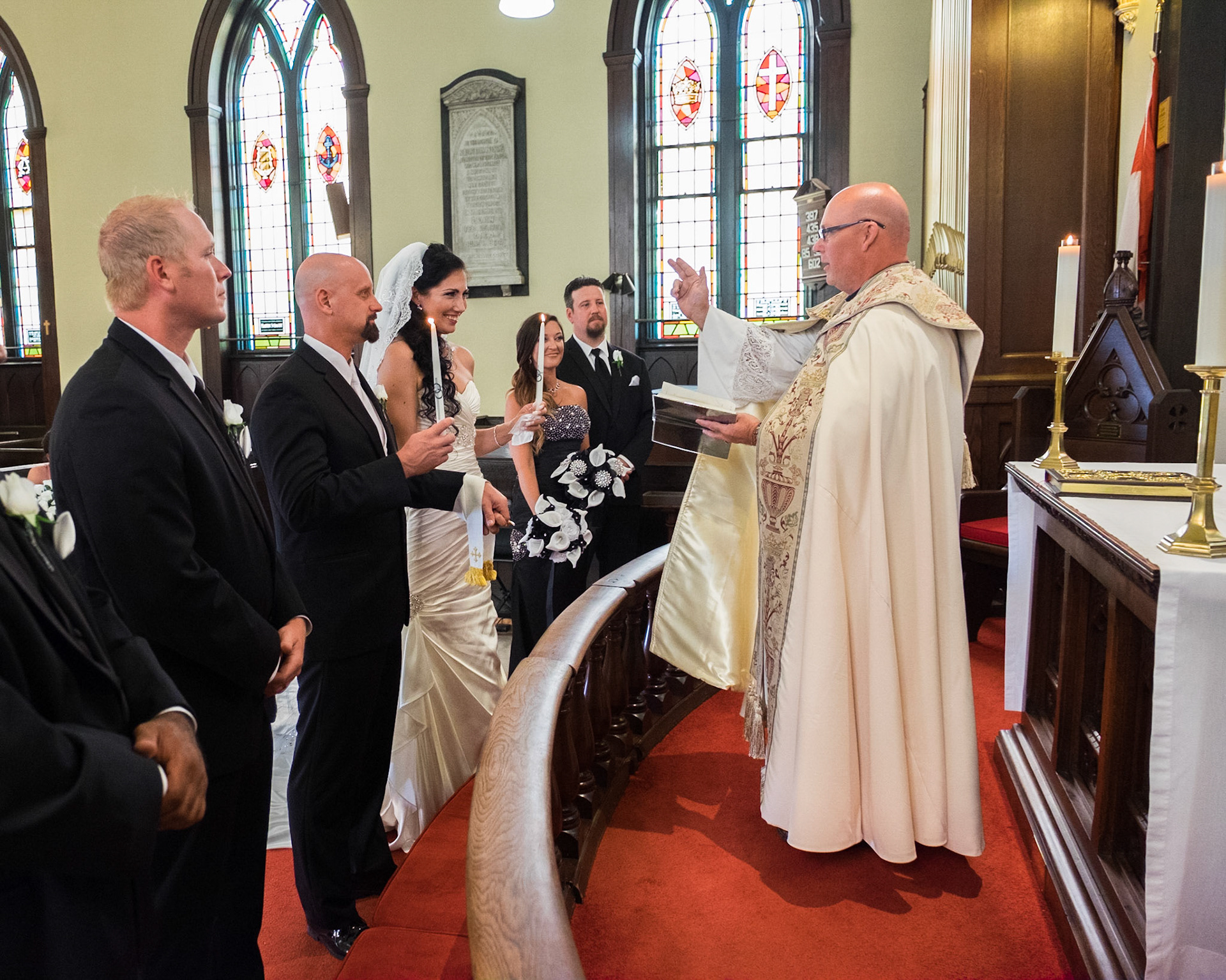 The wedding ceremony is a sacred covenant entered into before God and in the presence of family and friends. The photographer should do their best to be non-intrusive at this time. Officiating clergy will often ask that no flash be used, which is no problem, considering today's cameras are capable of great images in low light using high ISO values.