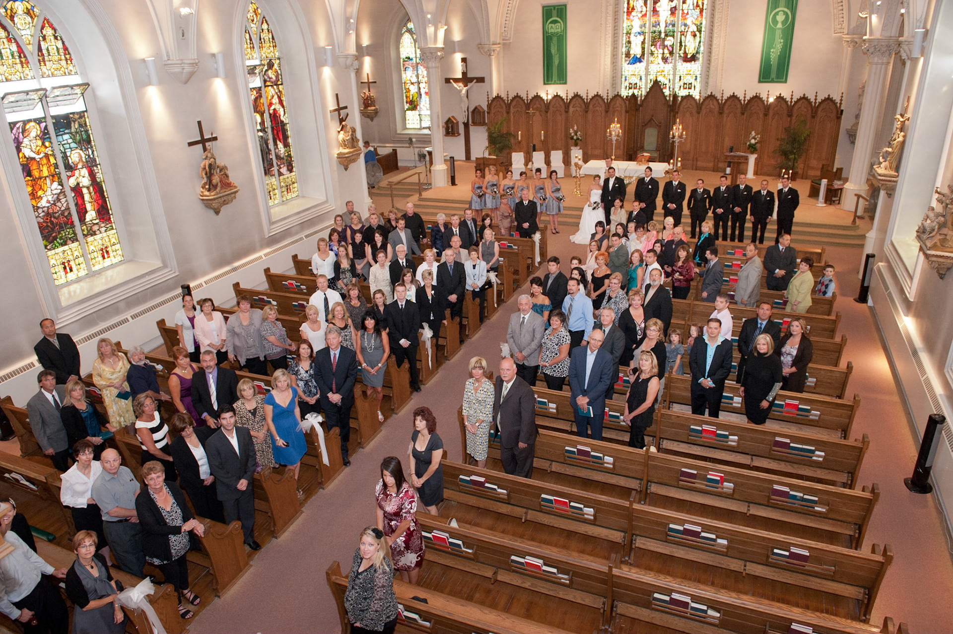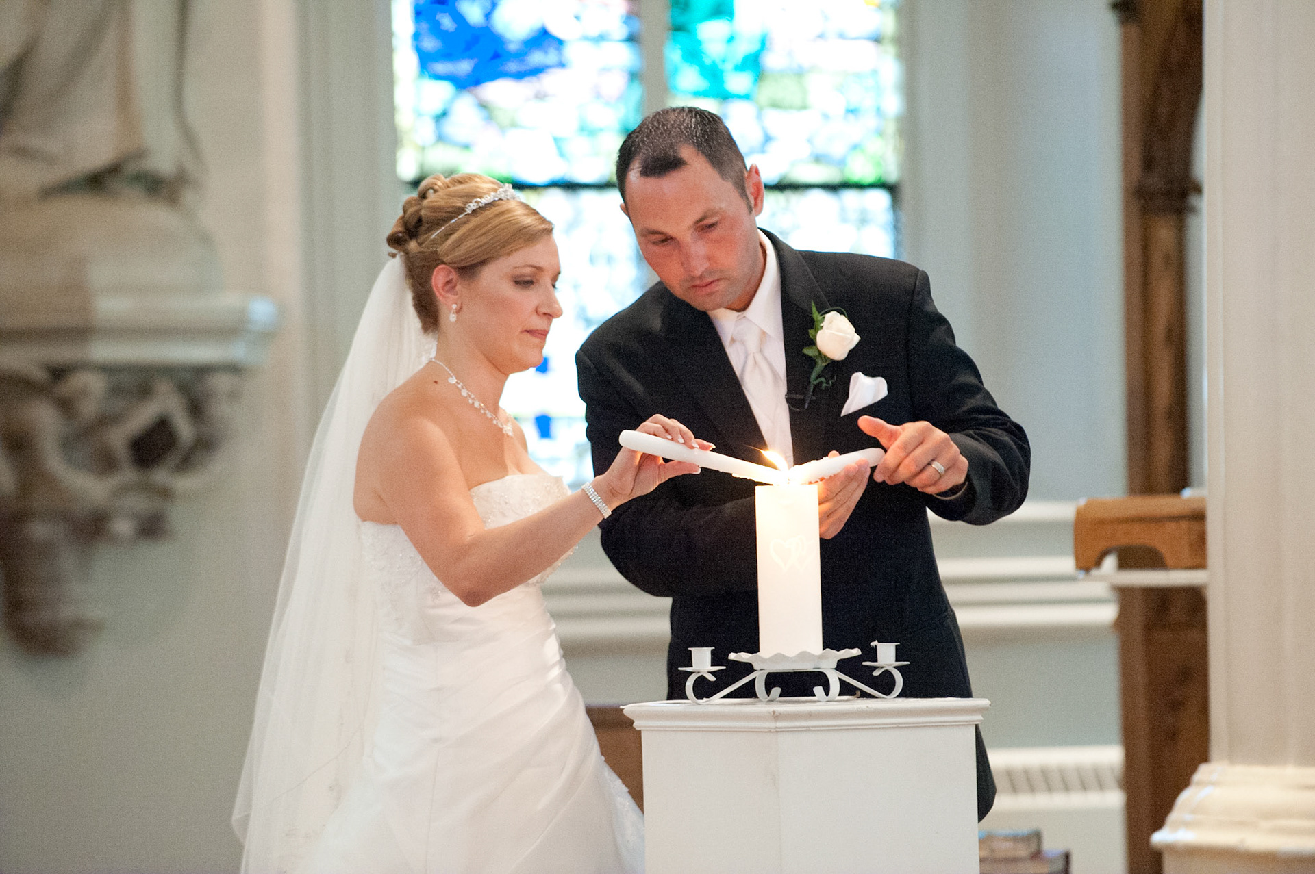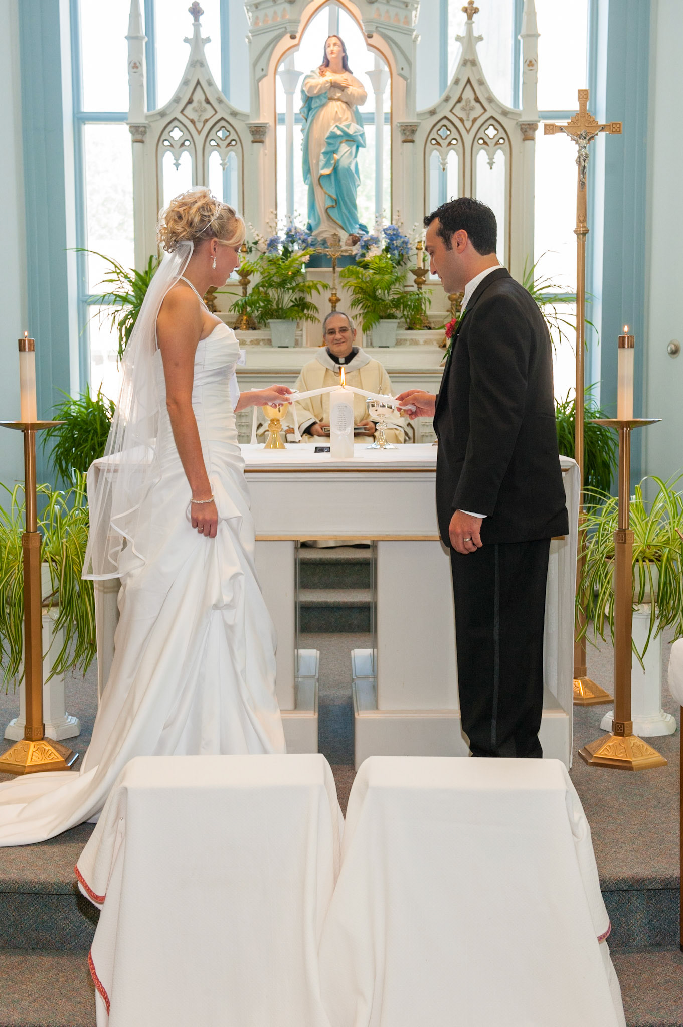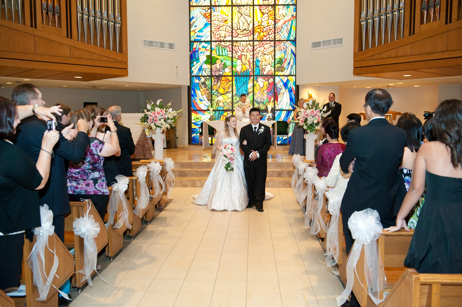The wedding ceremony is a sacred covenant entered into before God and in the presence of family and friends. The photographer should do their best to be non-intrusive at this time. Officiating clergy will often ask that no flash be used, which is no problem, considering today's cameras are capable of great images in low light using high ISO values.